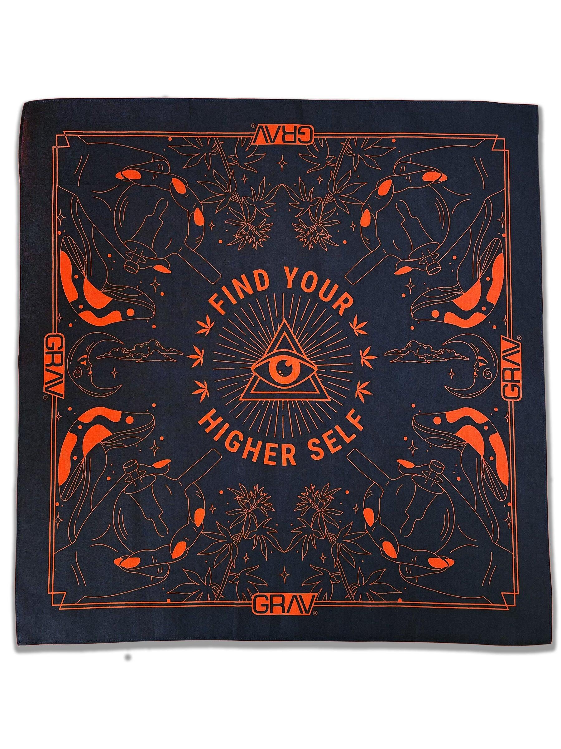 Cover your head, neck, or dog with these illustrated Bandanas. We have several to choose from in multiple colors. This soft bandana made from 100% cotton features GRAV-themed art and a “Find Your Higher Self” motif. It’s excellent for dabbing a moist brow or tying a scarf around your neck. It’s called fashion, honey. Available in navy, beige, orange, and green.