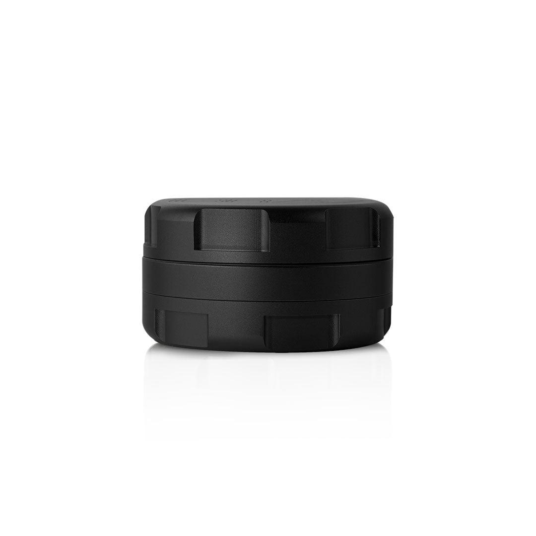 The GRAV® Grinder is 1.25″ tall and made of CNC aluminum. The 15 teeth and holes in its upper chamber are well-spaced to prevent clogging. Its bottom chamber features a GRAV® branded aluminum scraping tool.