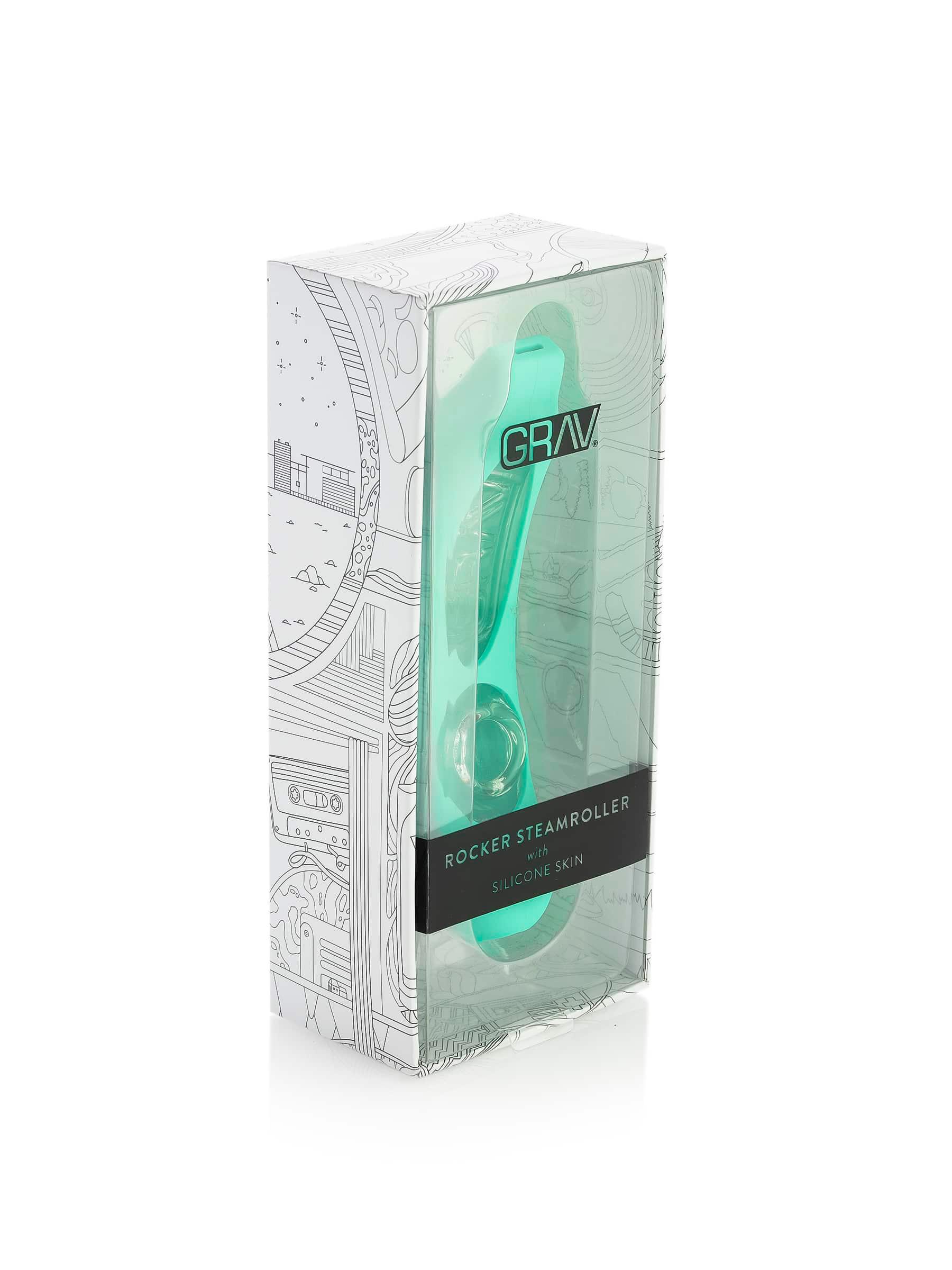 The Rocker Steamroller is already virtually unspillable. The Rocker Steamroller with Silicone Skin is virtually unbreakable too. The glass Rocker Steamroller is encased in a protective silicone case that keeps the glass safe from minor falls and bumps from any angle. The silicone is open over the distinctive GRAV® logo as well as the raised bowl, so your flame and herb only come into contact with glass. There’s also a hole over the ergonomically positioned carb, and the comfortable silicone mouthpiece forms an ash catching restriction that makes your hits even smoother.